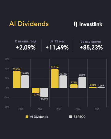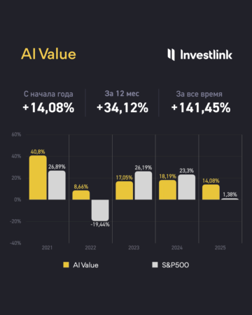 Объективность отчета обеспечивается сравнением доходности портфельных инвестиций на базе ИИ с биржевым фондом, который предназначен для отслеживания индекса S&P 500 (500 избранных компаний на рынке США). Заодно вы можете оценить доходность ИИ в трех временных форматах: с начала года, за 12 месяцев и за всё время.